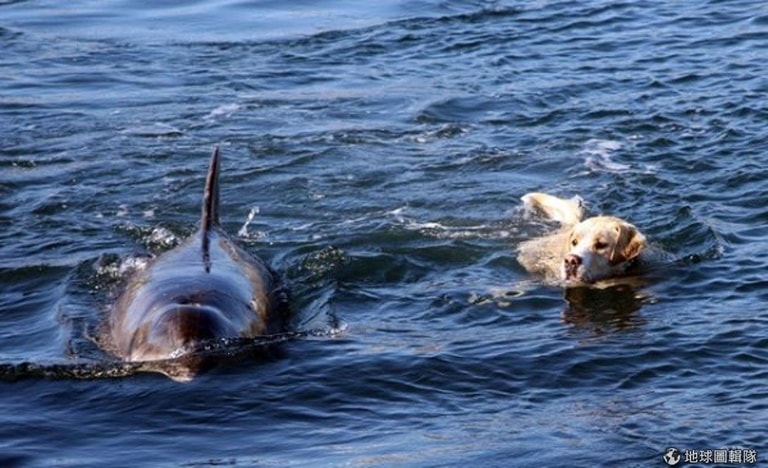 雖然海豚和拉拉平時都過著各自的生活,但每次見面都玩得難分難捨,不過,牠們能玩多久就要看Ben的行程,最多可以玩到3小時!而且當Ben累癱的時候,Duggie還會頂住狗朋友的背,確保牠能夠安全回到岸上。