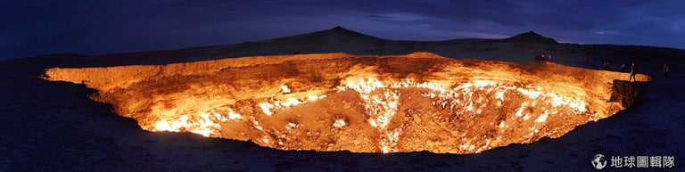 1971年,來自蘇聯的工程師不小心把鑽破了天然氣的岩層,導致地面整個陷落,結果造就出一個70公尺大的地洞,現今稱之「地獄之門」(Door to Hell),因為地洞太巨大無法掩埋,當時的工程師就決定讓天然氣自行燒乾就好,但這一等就是40多年。