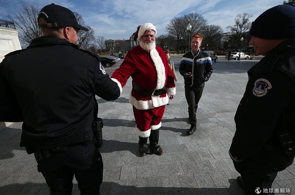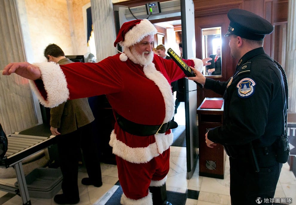 身負重任的聖誕老公公,進入國會山莊前也要接受精密的檢查!如果帶了小朋友的玩具可是會畢畢叫啊!圖片來源:Win McNamee/Getty Images