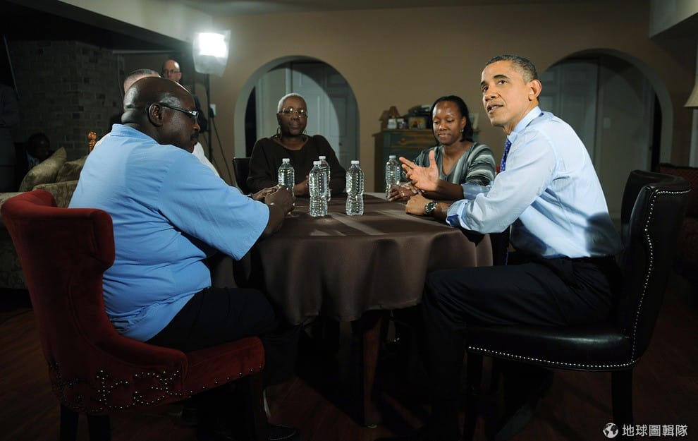 歐巴馬明明才忙完總統大選不久,仍勞碌的在美國境內到處飛來飛去,為得就是要讓它處理「財政懸崖」的施政措施可以順利進行!照片中的他飛到了維吉尼亞州,要跟當地民眾推廣有關房屋稅率相關的措施。圖片來源:Olivier Douliery-Pool/Getty Images