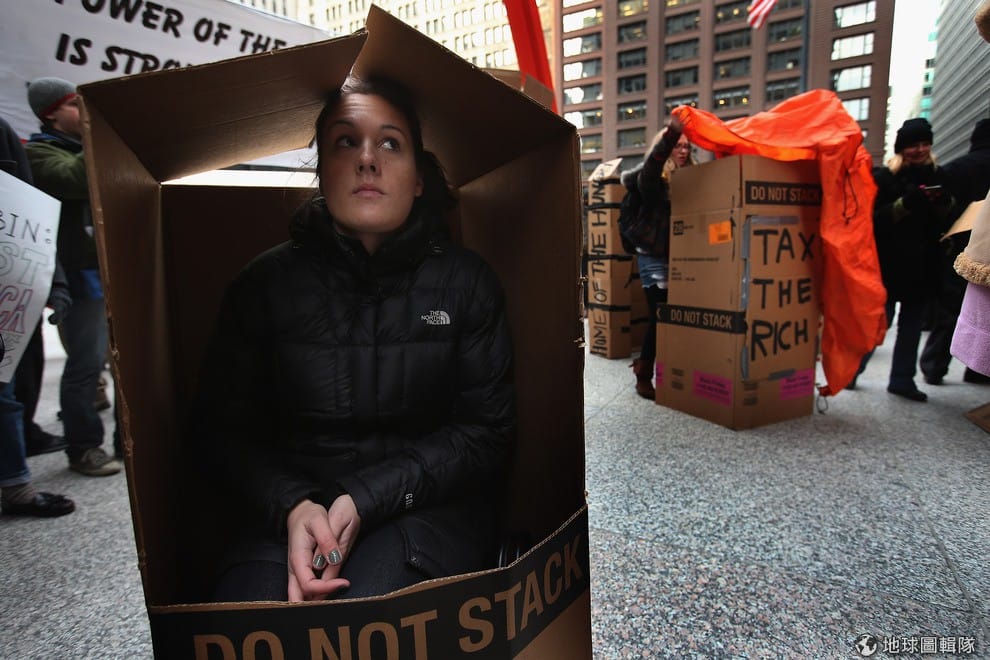 他們要表達對兩黨在低收入階層的稅額這件事情上的不安,呼籲美國政府一定要重視他們的權益。圖片來源:Mario Tama/Getty Images