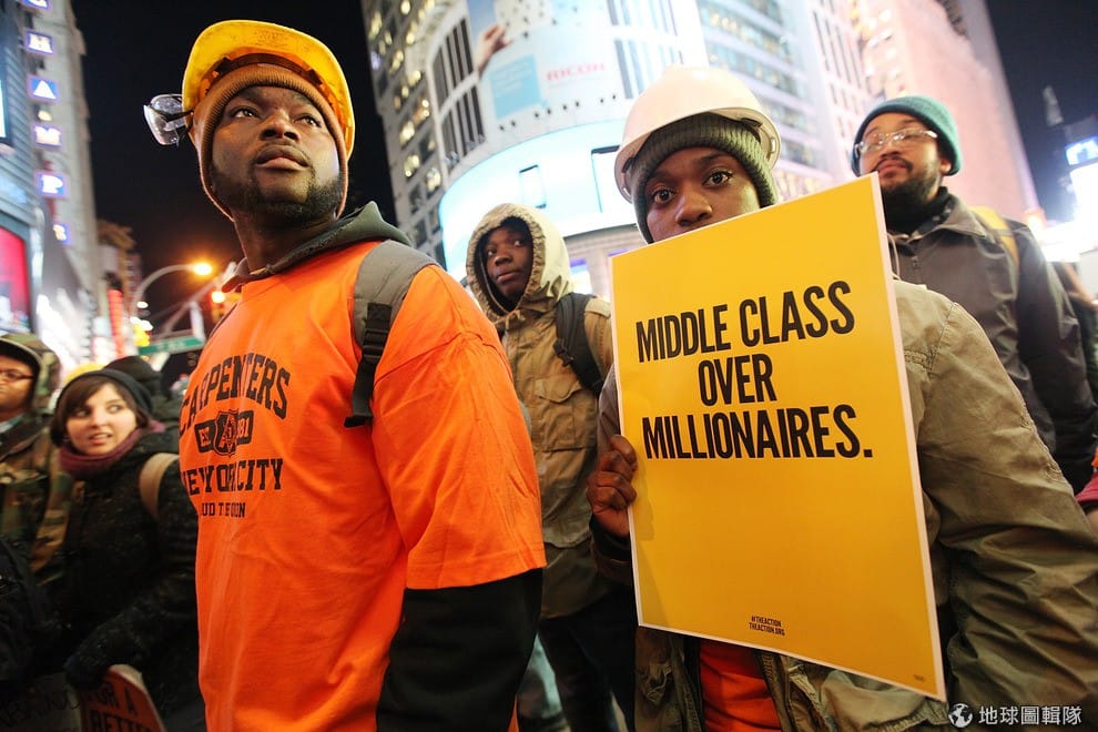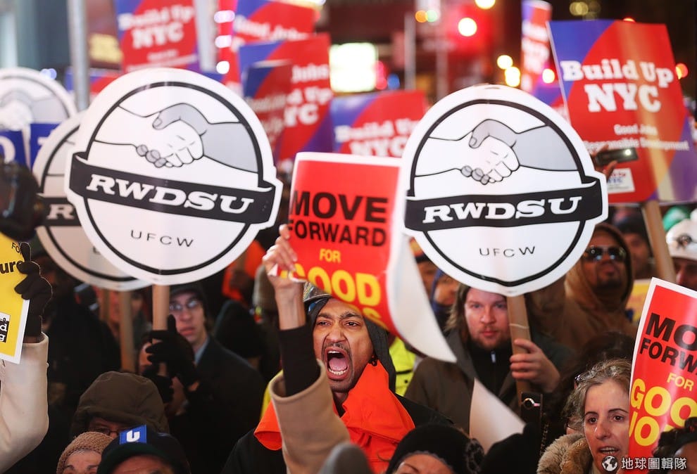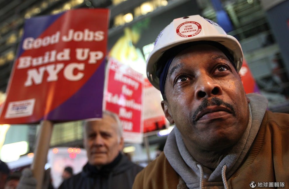 紐約的時代廣場上,滿是低收入的藍領工人。圖片來源:Mario Tama/Getty Images