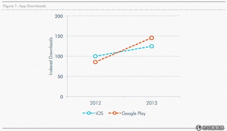 直到 2013 年為止的研究數字,似乎都說明著這個市場仍然前景大好,App Annie 的研究報告表示, 2013 年 iOS 與 Google Play 的 Apps 下載量也略有成長,尤其營收也全面增長,而日本則靠著《Puzzle & Dragons》的強勁營收成為應用程式收入第一大國,其次為美國與南韓。