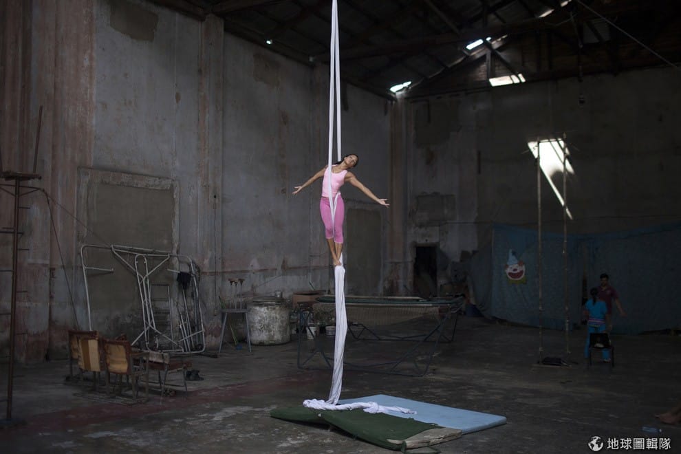 18歲的馬戲團表演人員奧加(Olga Morales),正在哈瓦那當地進行訓練課程。