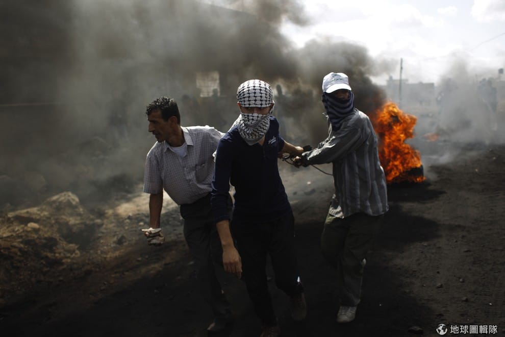 巴勒斯坦的示威者拖著燃燒的輪胎,住在約旦河西岸的示威者抗議猶太人進駐到附近的奎多門(Qadomem)地區,並在示威之後和以色列軍隊發生衝突。