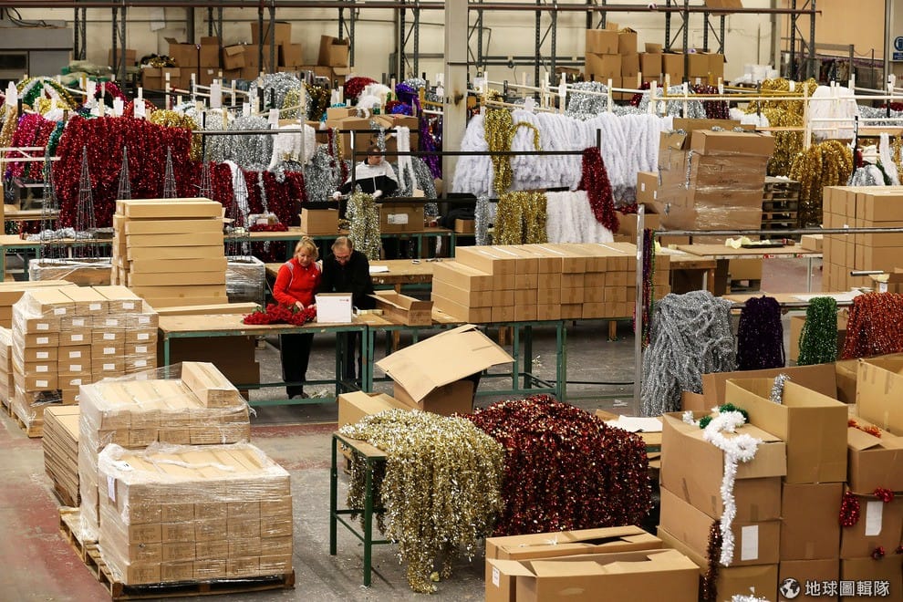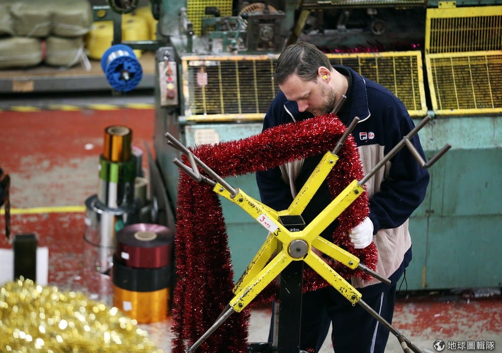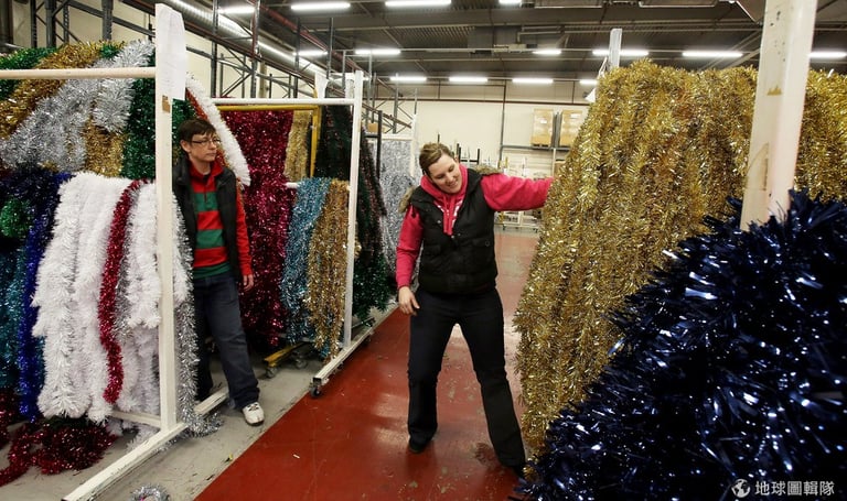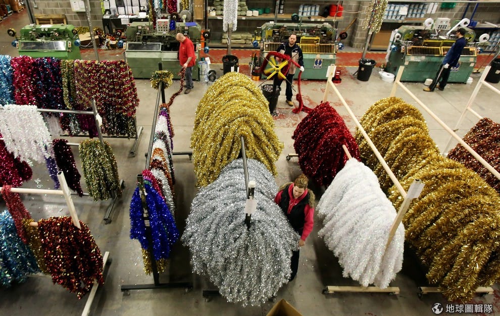 這家工廠原來就是專門製造聖誕金蔥彩帶的工廠,最近又加入好多聖誕裝飾,讓客人可以一次在這邊買足!圖片來源:Matt Cardy/Getty Images