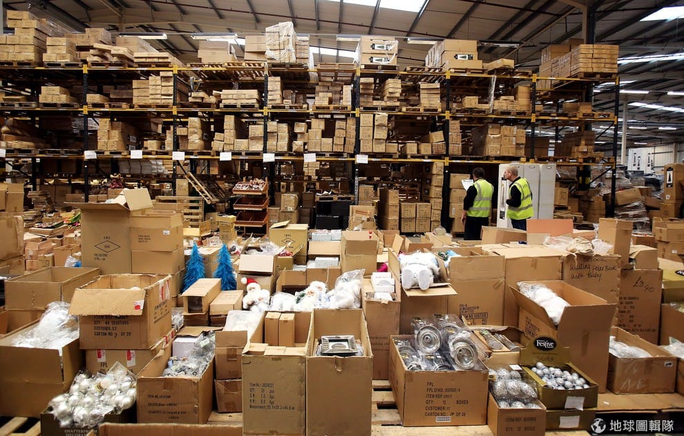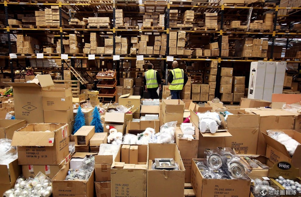 另一頭,滿滿準備上架的商品等著員工清點檢查。圖片來源:Matt Cardy/Getty Images