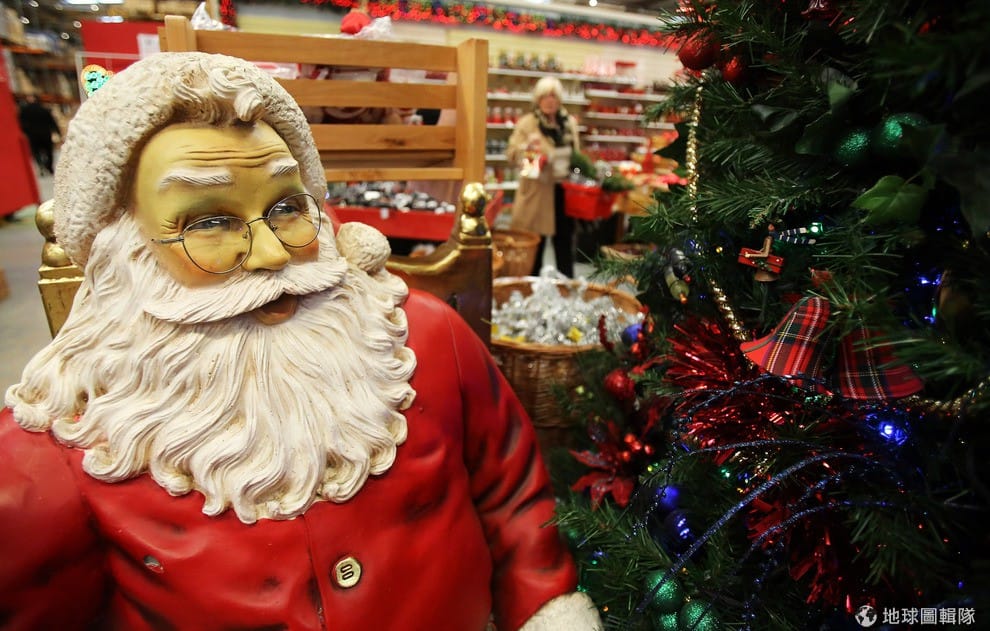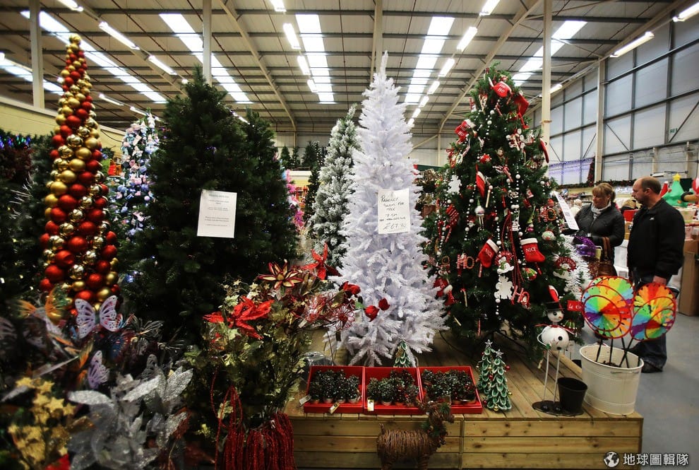 商品區是滿坑滿谷的聖誕相關商品,連聖誕樹的樣式就好多種!圖片來源:Matt Cardy/Getty Images