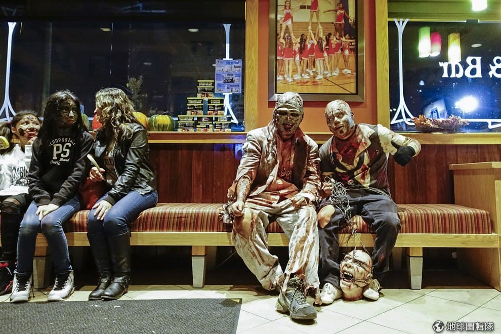 活動當天,紐澤西當地餐館的顧客都非常不一樣,民眾帶著特殊化妝和道具直接用餐。