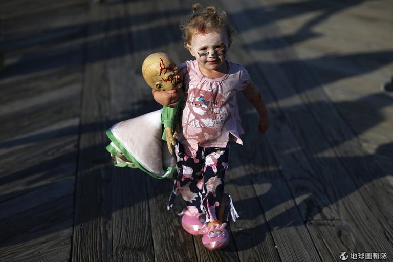 星期日(5)這天,美國紐澤西州的阿斯伯里帕克(Asbury Park)出現很嚇人的景象,數千名「血淋淋」的民眾一同拖著腳步前行,就連小朋友也是一臉「慘白」的跟著大人們緩緩前進,有趣的是,你會發現人人都是一臉開心的模樣。
