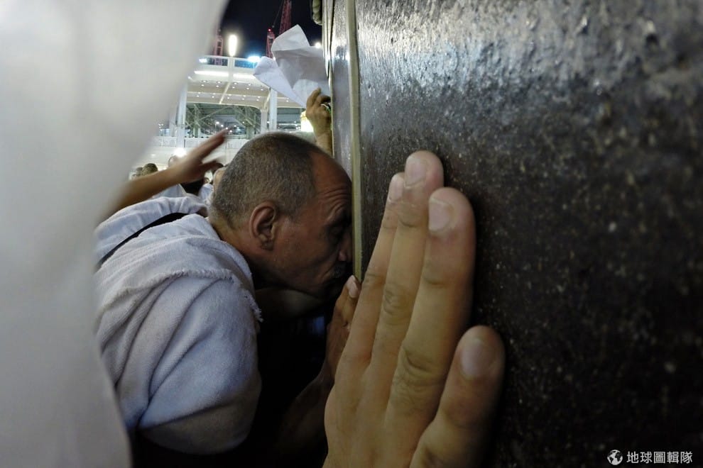 路透社在聖城麥加這,也能見到信眾們在忠孝節這天齊聚一堂,照片中朝聖的穆斯林親吻「克爾白」(Kaaba)的牆面。