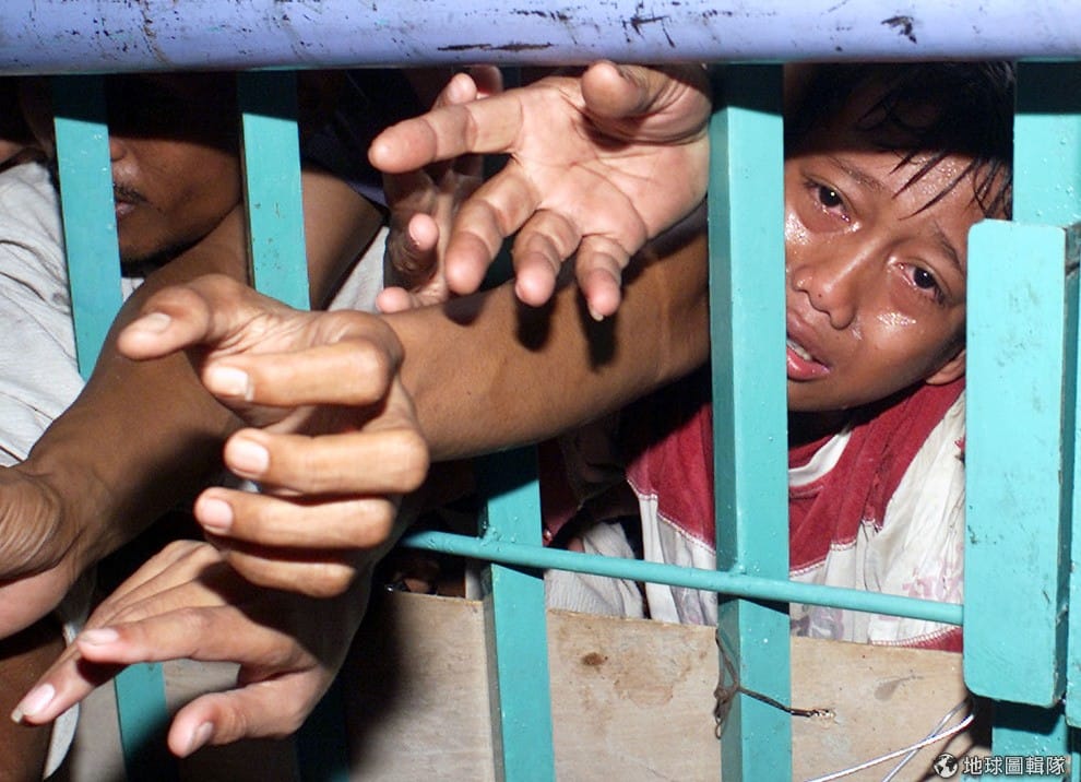 並非所有的穆斯林家庭都能提供牲畜獻祭,貧困的人們則需要其他人的幫助,照片中的小朋友和其他人搶著排隊希望能分到一些獻祭的肉。