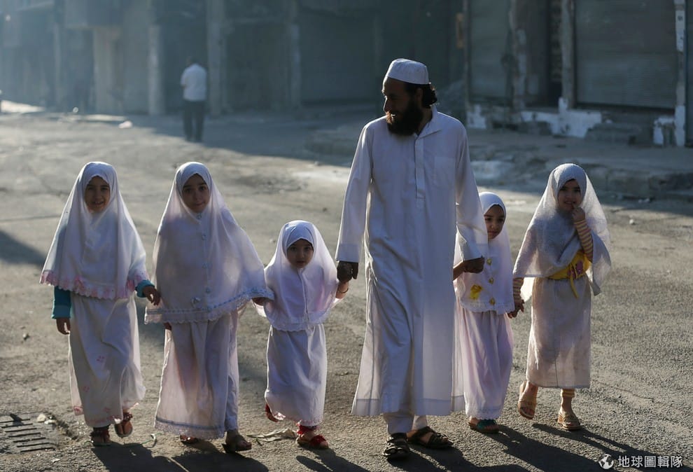 路透社菲律賓當地的穆斯林家庭,在5號這天結束了晨間禱告,一起留影作紀念。