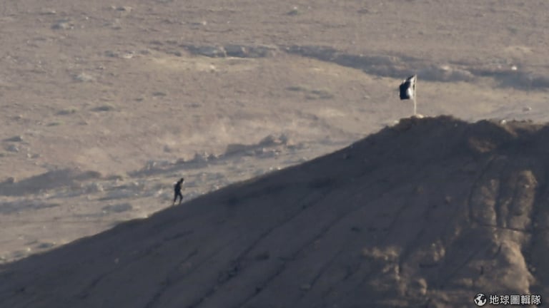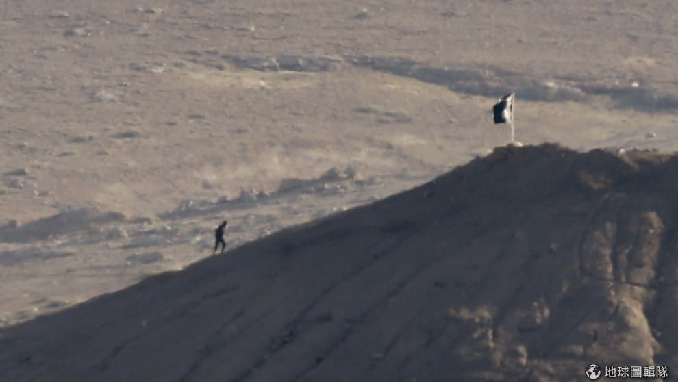 科巴尼附近高地可見伊斯蘭國聖戰士和代表他們的黑色旗幟