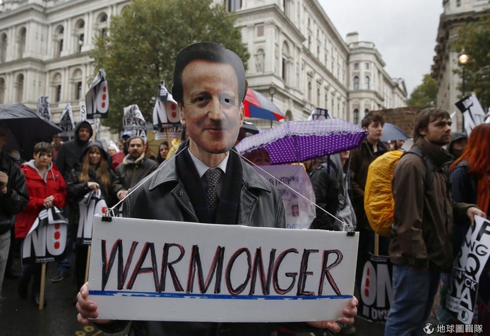 並非所有的人都支持轟炸伊斯蘭國的行動,10月4日時,英國當地就可以看到民眾抗議首相卡麥隆加入美國轟炸行動的決定
