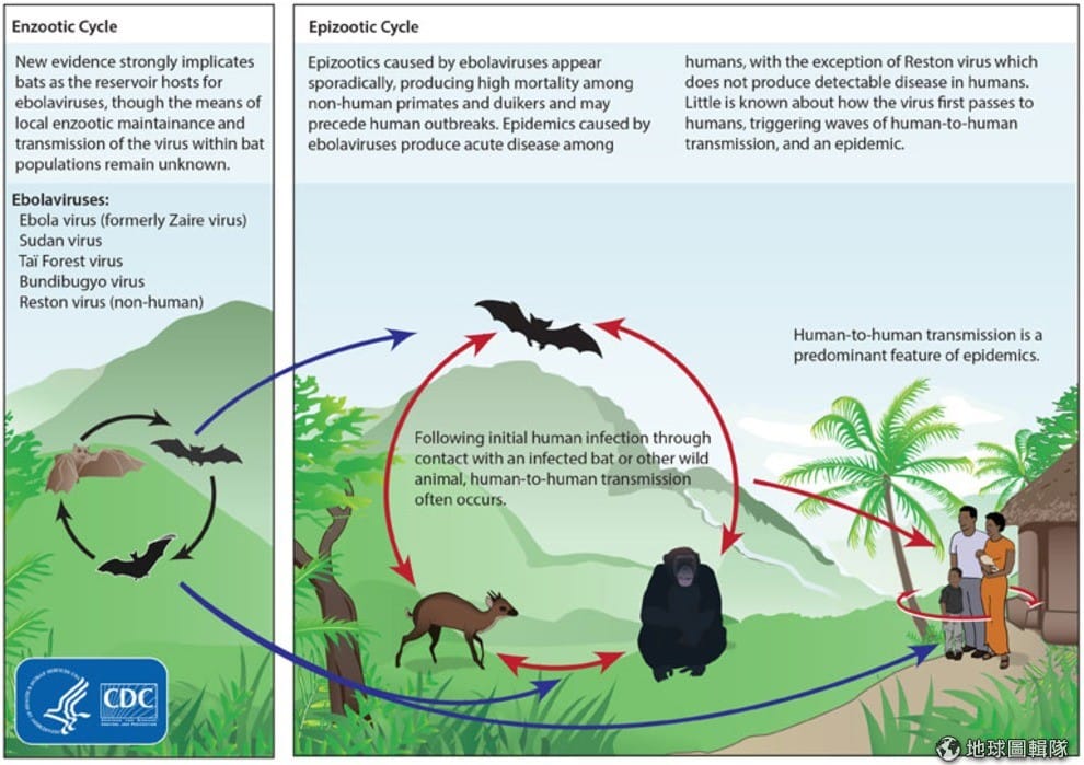 伊波拉病毒的傳染途徑。Photo credit: wikicommons