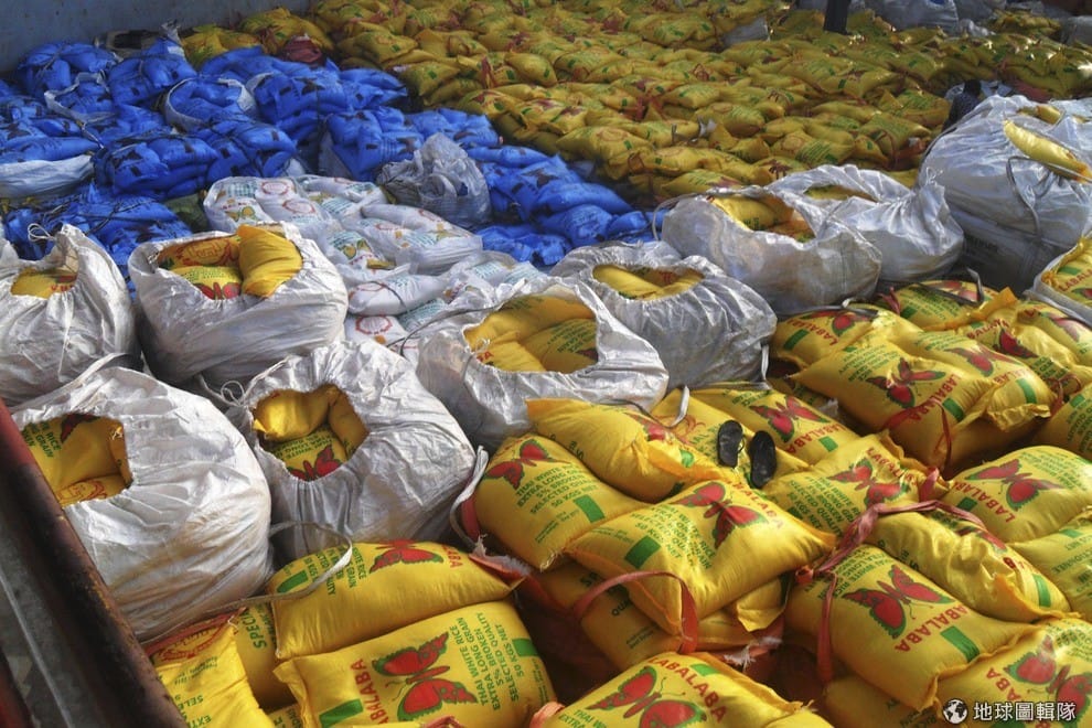 照片中是數千公斤即將送往賴比瑞亞的米,當地因為伊波拉疫情嚴重受到隔離,這也重創當地經濟民生