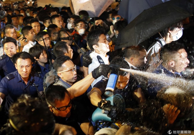 15號晚間,香港傳出警民嚴重衝突的消息,期間可見港警朝民眾使用胡椒噴霧