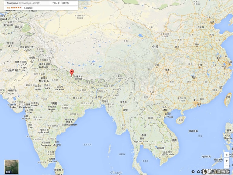 圖中標記的位置是這次傳出嚴重山難意外的安娜普納環繞線(Annapurna Circuit)