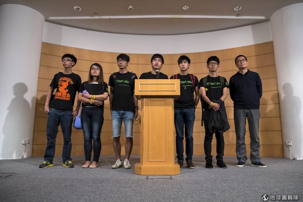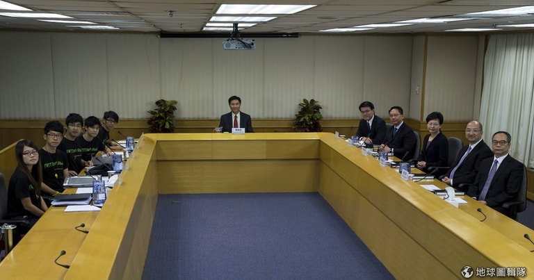 參與會談的學生代表們,站在中央的是學生領袖周永康。