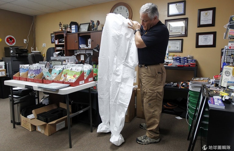照片中是美國的大衛(David D'Eugenio),他創辦了「家庭安全學院」(HomeSafety Academy ),原本目的是要教導大眾面對災害,現在他也把伊波拉病毒的對抗方式納入課程中。