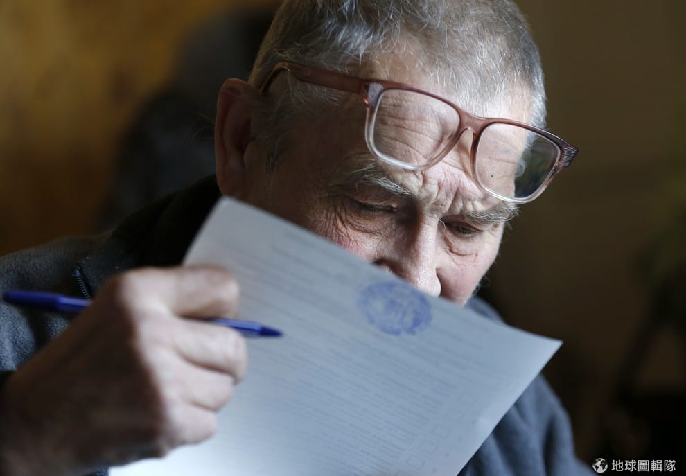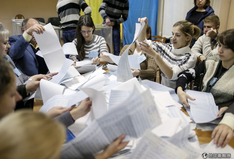 烏克蘭在上周日(10/26)舉辦了國會大選,照片中可以見到選民認真地在看選票上的內容。