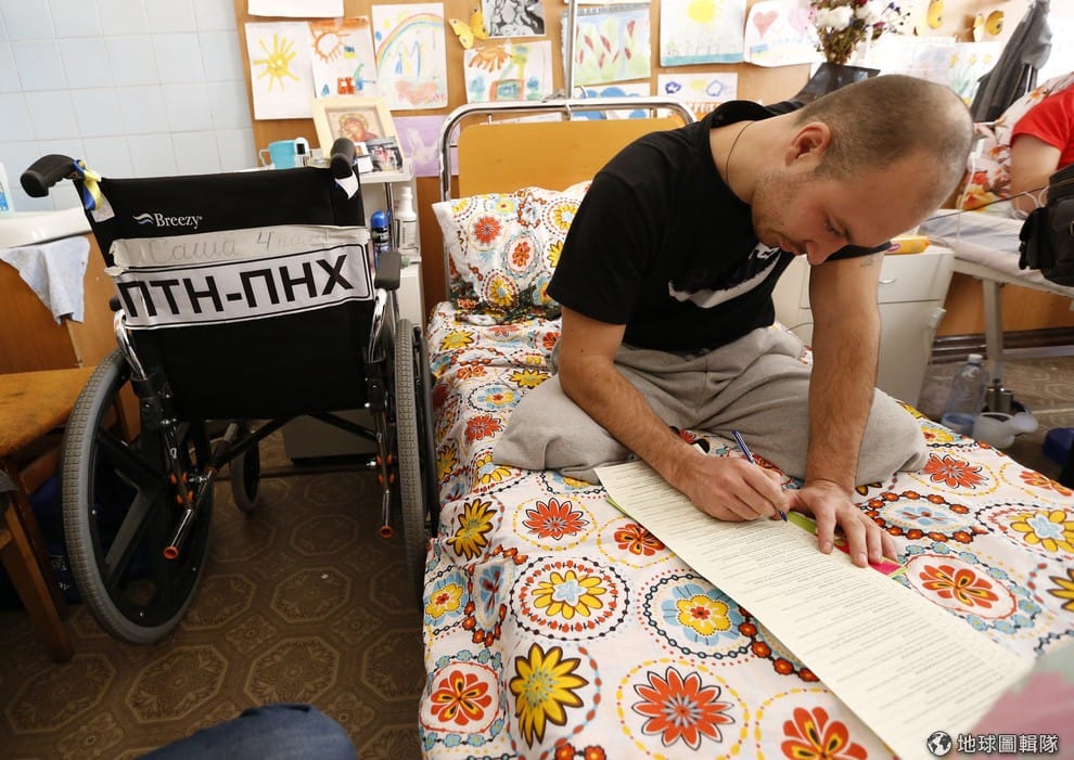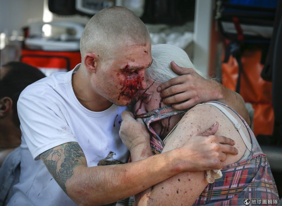 照片中的年輕人和婦女在東邊的內戰中受波及滿臉鮮血,對當地民眾來說,他們只求有安穩和平的生活。