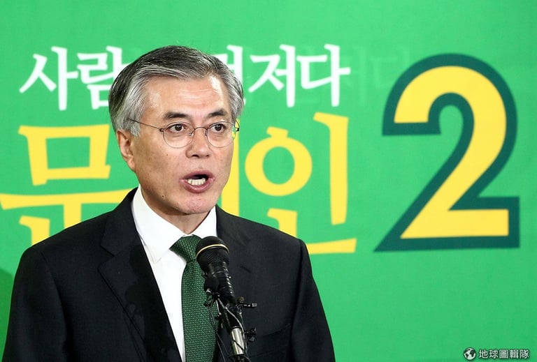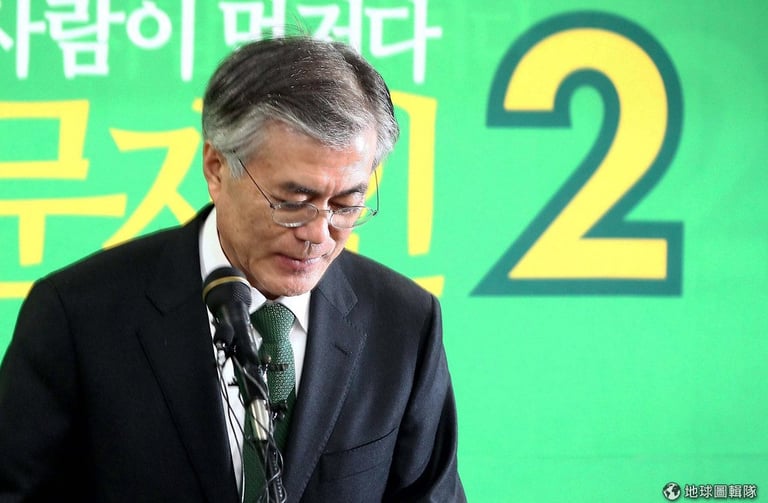 另方面,身為前總統盧武鉉幕僚長的文在寅也發表演說。圖片來源:Jeon Heon-Kyun-pool/Getty Images
