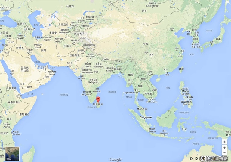 照片中紅色標記點就是斯里蘭卡,它位在印度的東南方