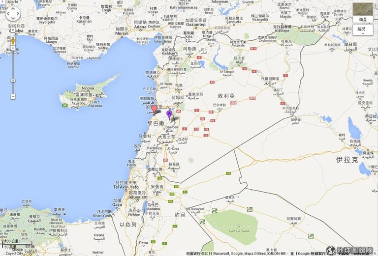 上圖紅色標籤是黎巴嫩的的黎波里城,紫色標籤是亞索鎮。的黎波里是黎巴嫩第2大城;亞索鎮則是個黎巴嫩小城鎮,靠近黎巴嫩和敘利亞的邊界地區。