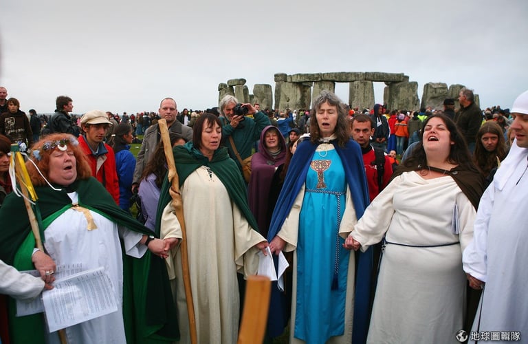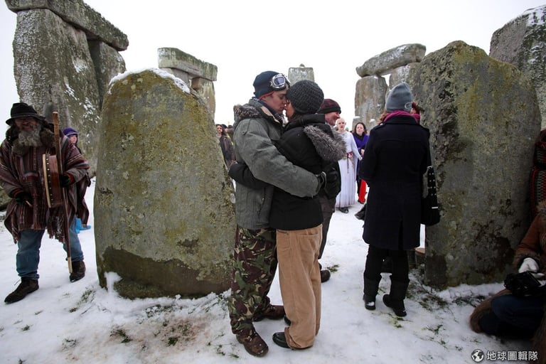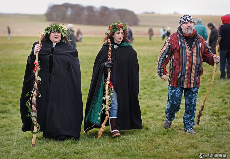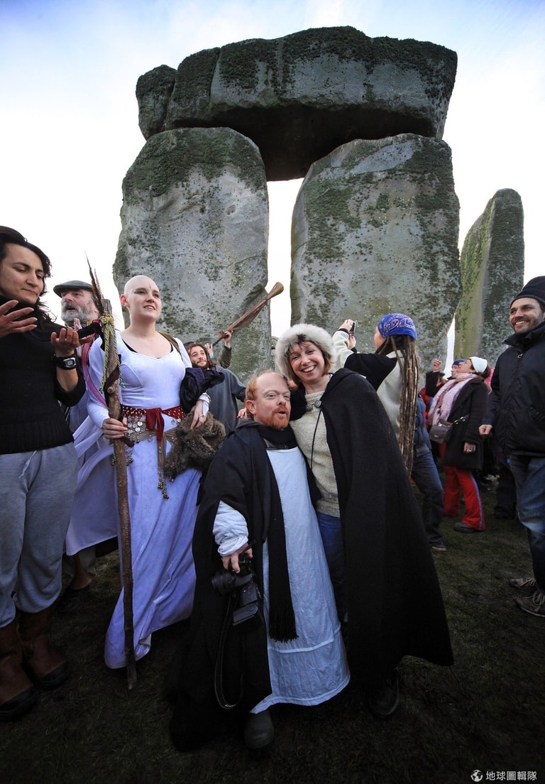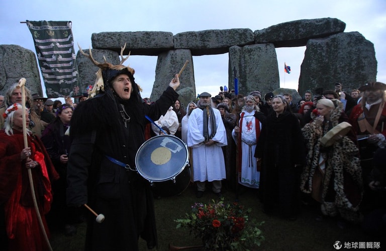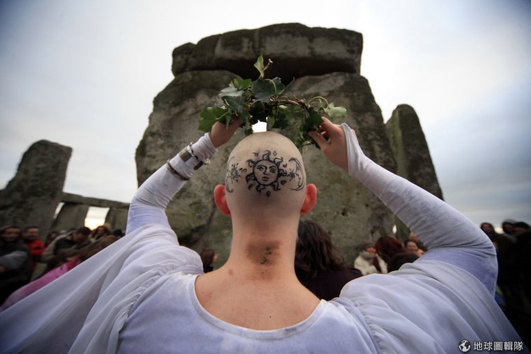 每年一到冬至,信仰古老宗教「德魯伊教」的教徒們,便會聚集到巨石陣,隨著大祭司(Arch Druid)一起頌揚大自然的神聖與美好,他們也會藉由冬至升起的朝陽曙光來判斷未來一年的興衰。