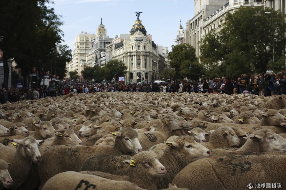 成群的綿羊走過馬德里市區中,這是牧羊人每年都會進行的放牧活動,他們要表達自己仍有權利使用傳統的放牧路線,所以每到此時,都可以見到牧羊人從西班牙北邊一路移動到位在南邊的冬季牧場。