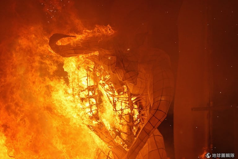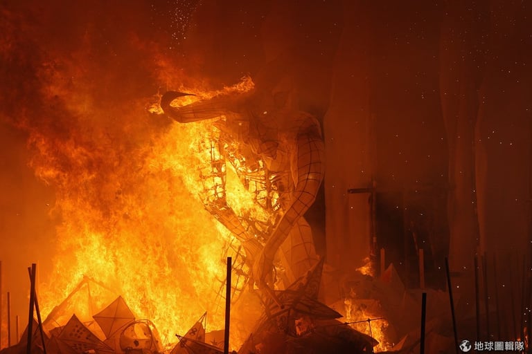 把惡魔形狀的燈籠燒掉,把大家的穢氣都燒掉吧!圖片來源:Dan Kitwood/Getty Images