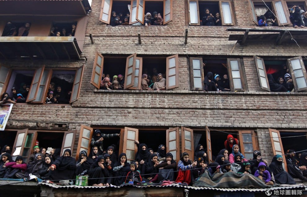 喀什米爾地區的穆斯林女性擠在窗邊,她們一起望著慶祝阿舒拉節的遊行隊伍走過。