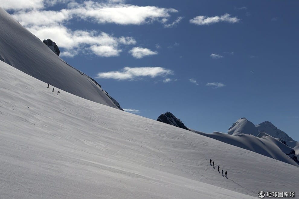 登山客們正在馬特洪峰附近的布來特峰(Breithorn)上緩步前進。瑞士將在11月30日時,舉行全民公投,決定是否要限縮外國移民的數量;根據當地團體Ecopop表示,他們擔心外來移民對瑞士的國土和資源形成壓力,於是提議將移民數量減少至居民數的0.2%,換算一下,這大約是限制每年移入人口只能有1.6萬人,這和過往相比,也等於是少了75%的移民人數。