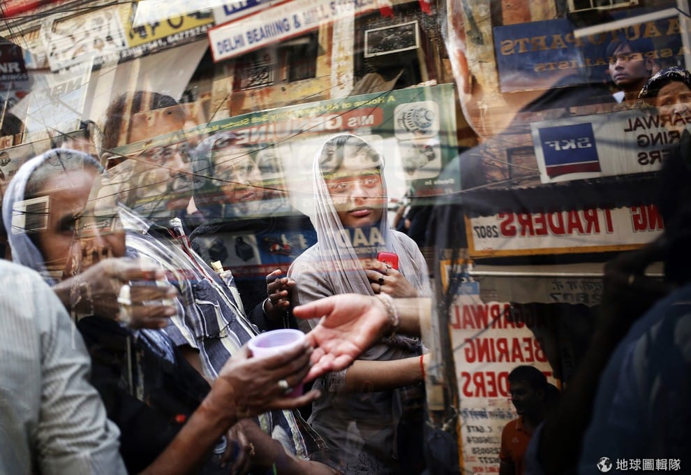 車窗倒映著什葉派穆斯林們,她們正在街上等待其他人發放免費的飲用水。印度即將迎接11月10日的年度大節日「阿舒拉節」(Ashura),這個節日是要紀念先知穆罕默德的孫子伊曼海珊在7世紀時被殺。