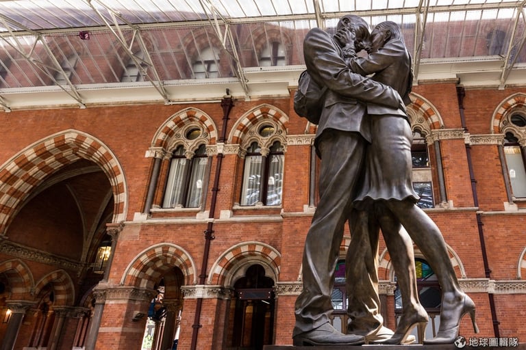 從全歐洲最忙的火車站,你可以直接搭車到歐陸的金融中心倫敦,當你到達倫敦的時候,你會發現你在聖潘克拉斯火車站(St Pancras station)。倫敦的聖潘克拉斯站從1868年開始營運,原本的新哥德式建築在之後進行了價值數億元的改建,讓聖潘克拉斯站成為倫敦的重點地標。