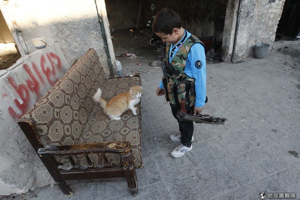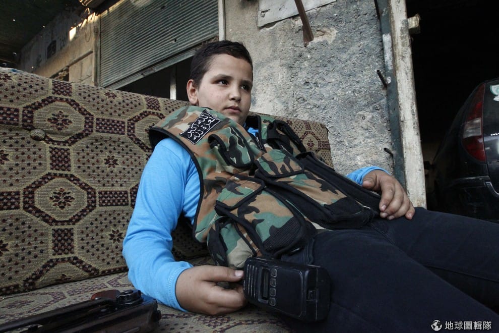 照片中是12歲的阿布德(Abboud),他和14歲的哥哥都加入了敘利亞當地的反政府軍。