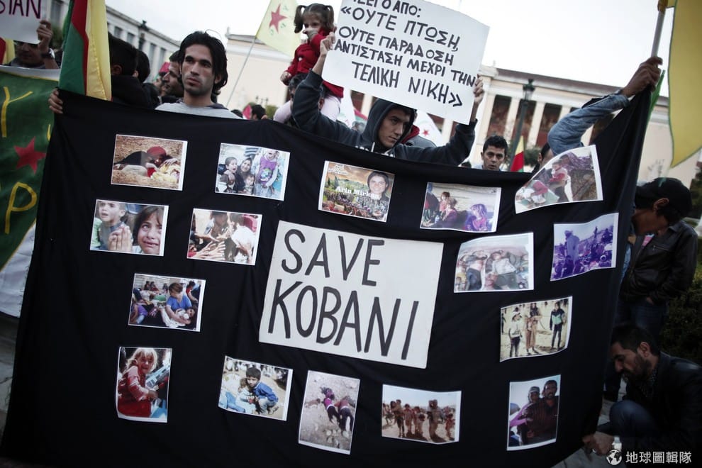 照片中的民眾聲援科巴尼市的居民。今年6月開始不斷在中東地區擴張勢力的伊斯蘭國,目前在敘利亞還有伊拉克等地佔領了相當大的土地,日前位在敘利亞和土耳其邊境的科巴尼城市更因為即將淪陷引起國際高度矚目,這也促使美國出動空襲行動協助救援。