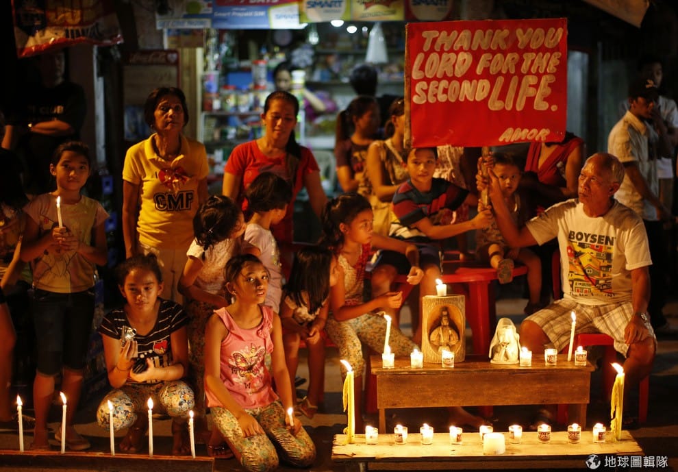 在這場紀念會上,可以見到來自菲律賓各地的民眾齊聚,他們邊誦唸禱告詞,並點亮蠟燭走過獨魯萬災區,這裡在2013年的風災中就有超過2000人喪生。