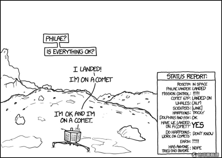 網友可愛地繪圖紀錄菲萊登陸的時刻。Photo credit: xkcd