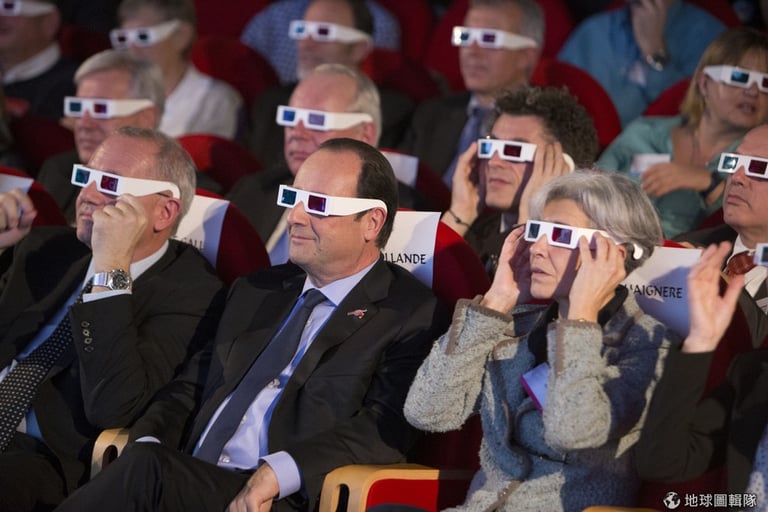 法國總統歐蘭德(圖中)在得知彗星任務成功後,到法國的航太中心參訪。他們眼前放的模型就是菲萊。