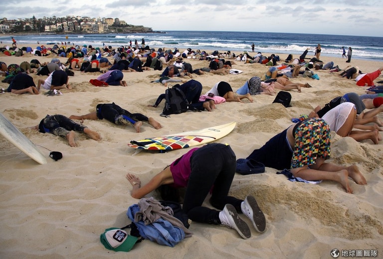 今年的會議沒有將氣候變遷議題納入討論議程,澳洲當地民眾認為澳洲總理亞伯特想逃避這個問題,於是在13號時發起抗議行動。他們在知名的邦迪海灘上把頭埋進沙灘,傳達抗議訊息給總理亞伯特(Tony Abbott):「一聽到氣候變遷你就變成把頭埋進沙子(的鴕鳥)了嗎?」