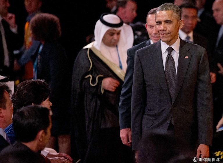 歐巴馬出席會議時對著一旁的韓國總統朴槿惠眨眼。