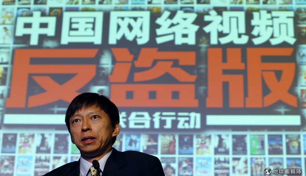 照片中的是搜狐網的CEO張朝陽,他在2013年時表態要打擊盜版。