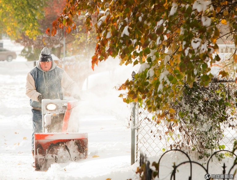民眾趕忙把戶外積雪清除