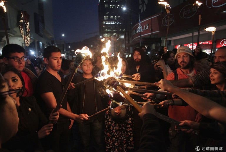 其實,11月20日是墨西哥的革命紀念日,今年他們要歡慶自1910年推翻獨裁政權以來的104周年,但今年因為大學生遭殺事件,許多民眾以示威抗議的方式在各處「紀念」。