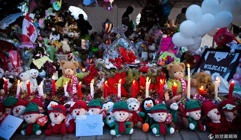 聖誕夜,民眾到弔念處點上燈火。希望他們的關懷能多少撫平受害者家人們的傷痛。圖片來源:Andrew Burton/Getty Images
