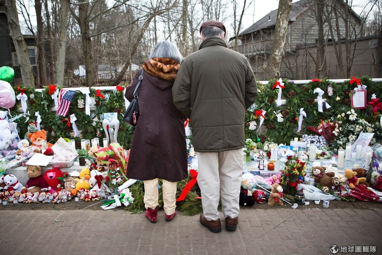 這起槍擊案,不只讓那20位小天使的父母親友心碎,所有人都感同身受,為無辜逝去的生命感到悲傷。圖片來源:Andrew Burton/Getty Images