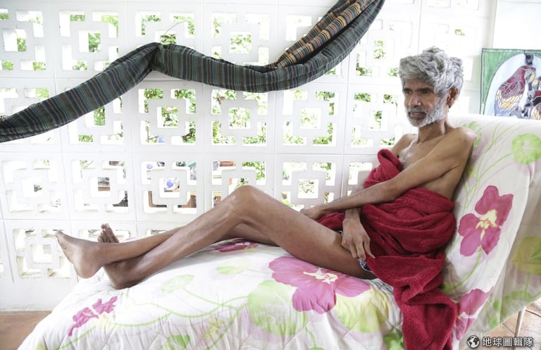 照片中是55歲的庫巴拉欣教授(Dr. Wayne Kublalsingh),進入絕食抗議第65天的他躺在自家的吊床上接受訪問。